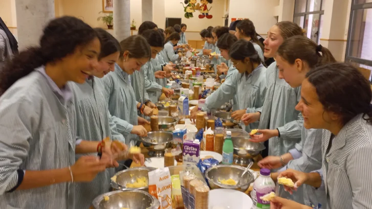 Tras la tradicional y riquísima comida con menú sorpresa, el patio estalló en cantos y bailes, preparados por las alumnas mayores.