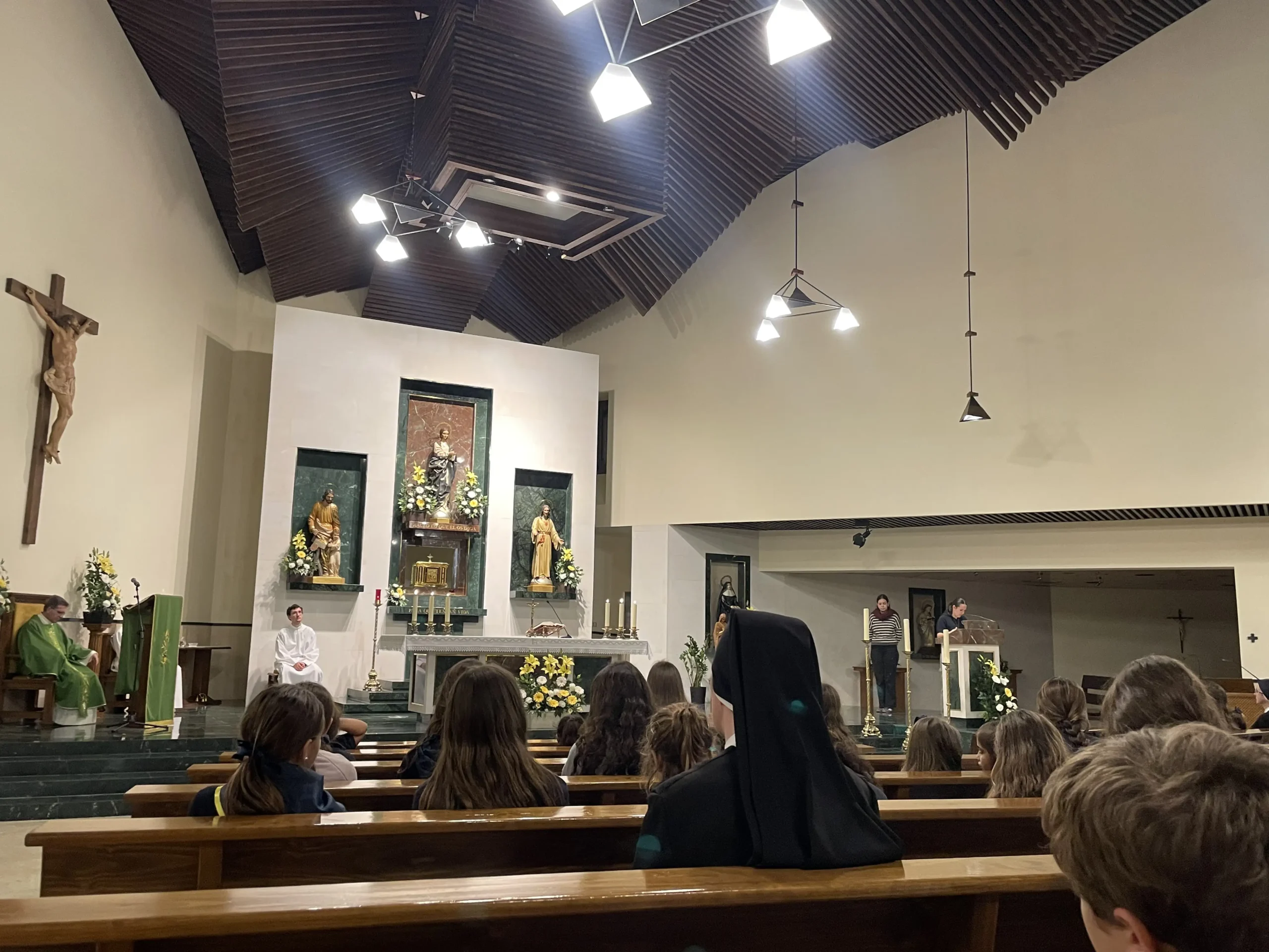 A continuación, tuvo lugar la Santa Misa, presidida por el Padre Ramón García-Saavedra, Vicario Episcopal para la Vida Consagrada en nuestra diócesis de Getafe, y concelebrada por 11 sacerdotes, a los que estamos tan agradecidos por su entrega en el Colegio y fuera de él.