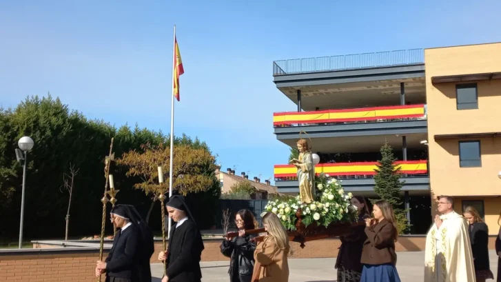 Tras una gozosa acogida, rezamos el Rosario y celebramos la procesión, seguida de la Santa Misa. Tras una foto para el recuerdo, tuvo lugar la comida y, por la tarde, un agradabilísimo rato de convivencia en el que se incluyó el visionado de un vídeo en el que se recogían muchas de las vivencias de las antiguas colegialas.