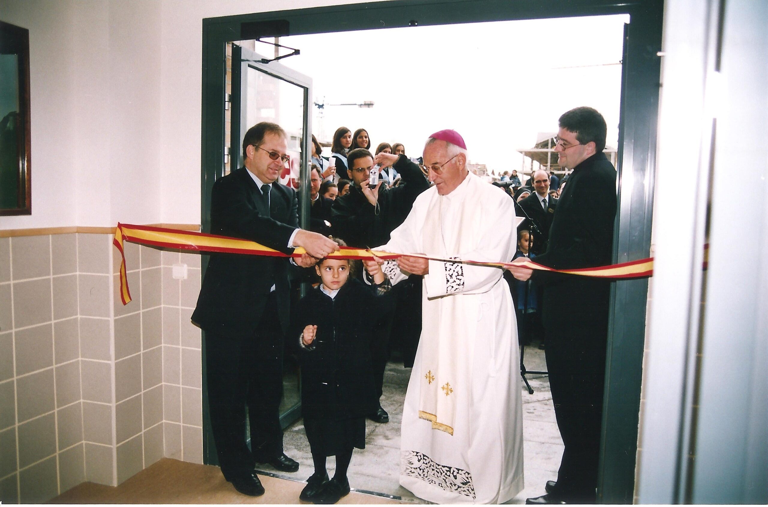 El 25 de octubre de 2003 tuvo lugar la Bendición del nuevo Colegio. Fue un día realmente extraordinario. Llegaron ocho autobuses que venían de Talavera, acompañados por 17 monjas. ¡Fue muy emocionante el volver a verse después de cuatro meses! La Santa Misa estuvo celebrada por el señor Obispo de Getafe D. Francisco Pérez y Fernández-Golfín, y concelebrada por 18 sacerdotes más. D. Francisco resaltó la importancia del día, la labor educativa de la Iglesia, y de manera especial de la Orden de Nuestra Señora. Al final de la Misa, Don Jorge López Teulón contó la historia de la imagen de la Niña María de Valdemoro, lo que emocionó a todos.