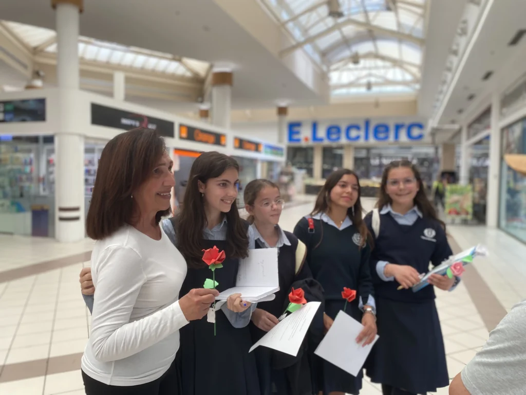 Además, las alumnas de 1º ESO han salido a las calles a entrevistar a la gente en relación a la lectura, obsequiándoles con una rosa.