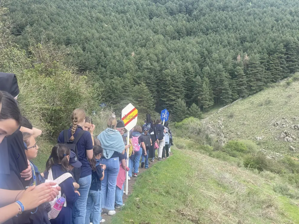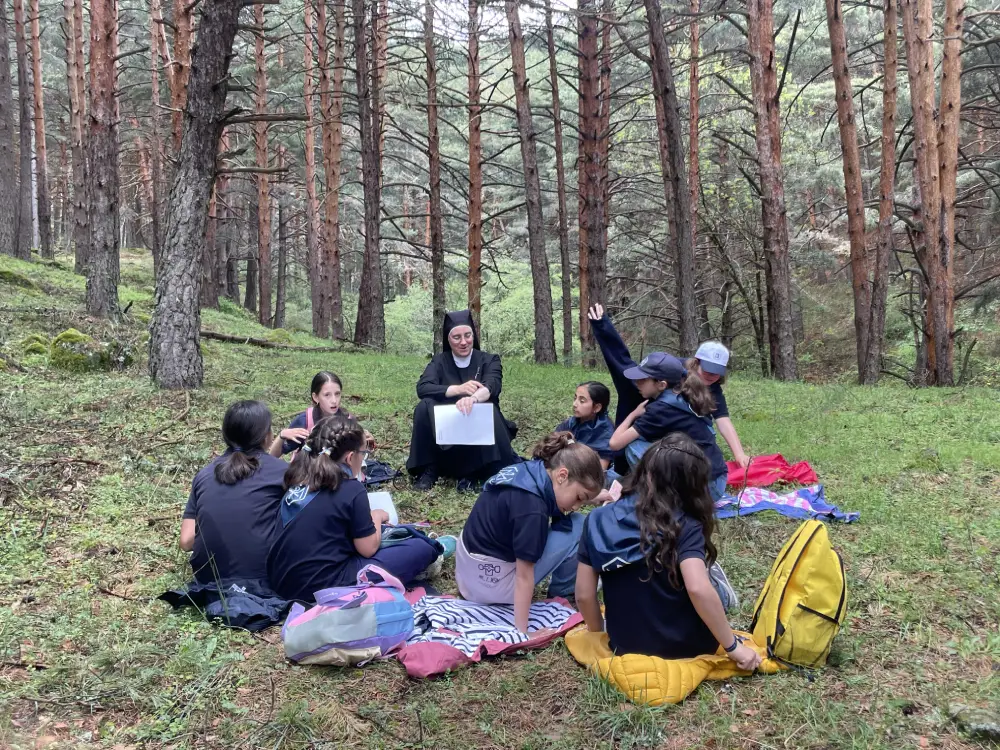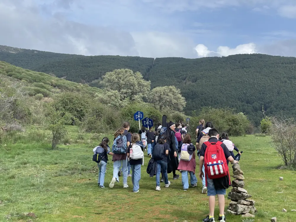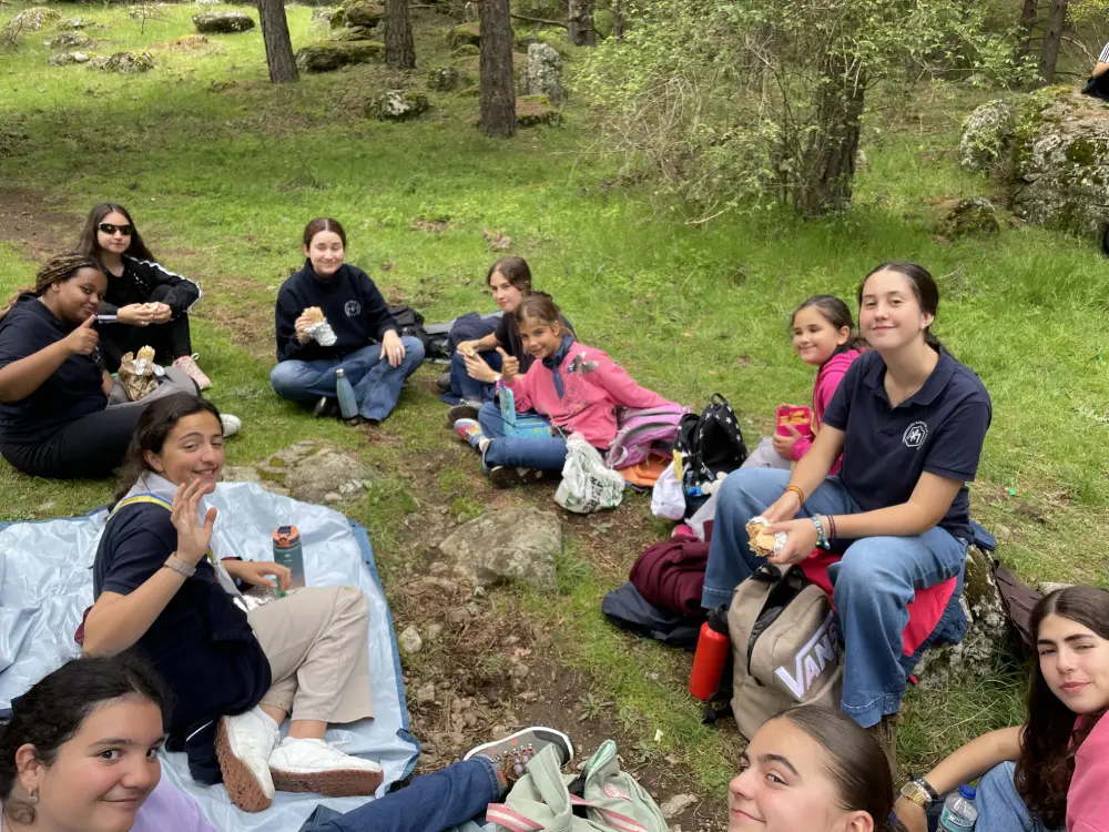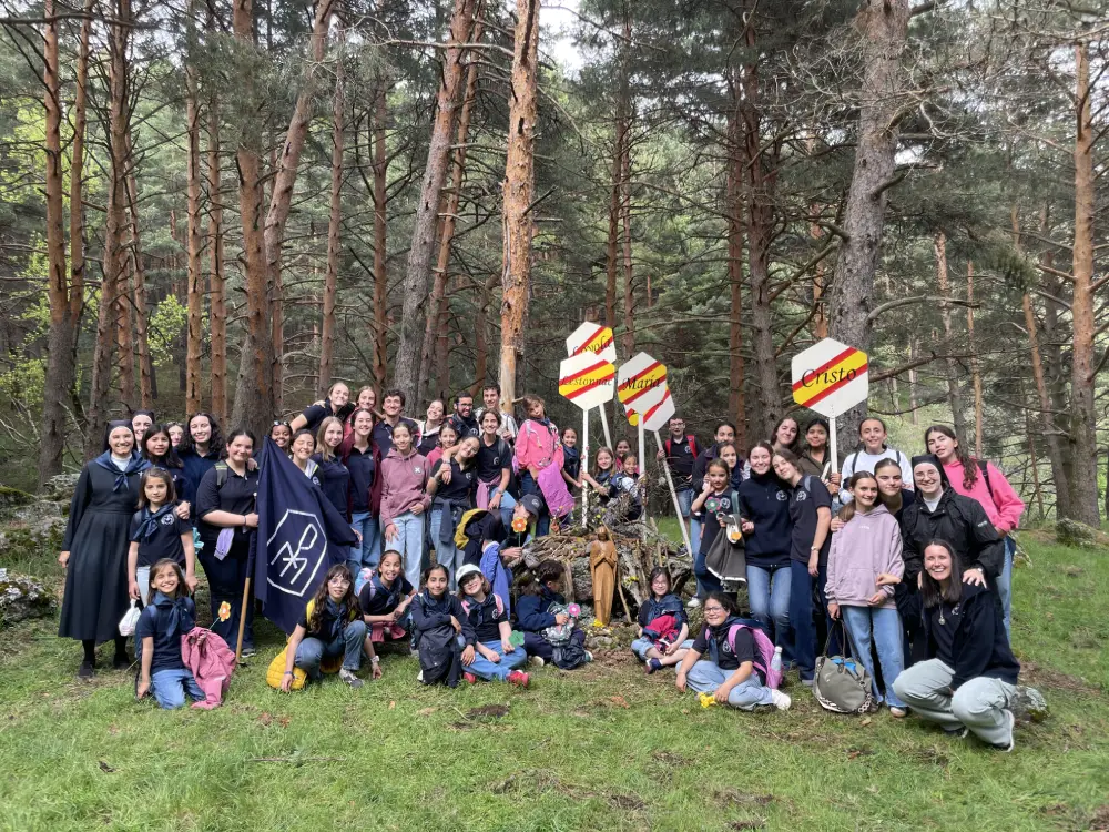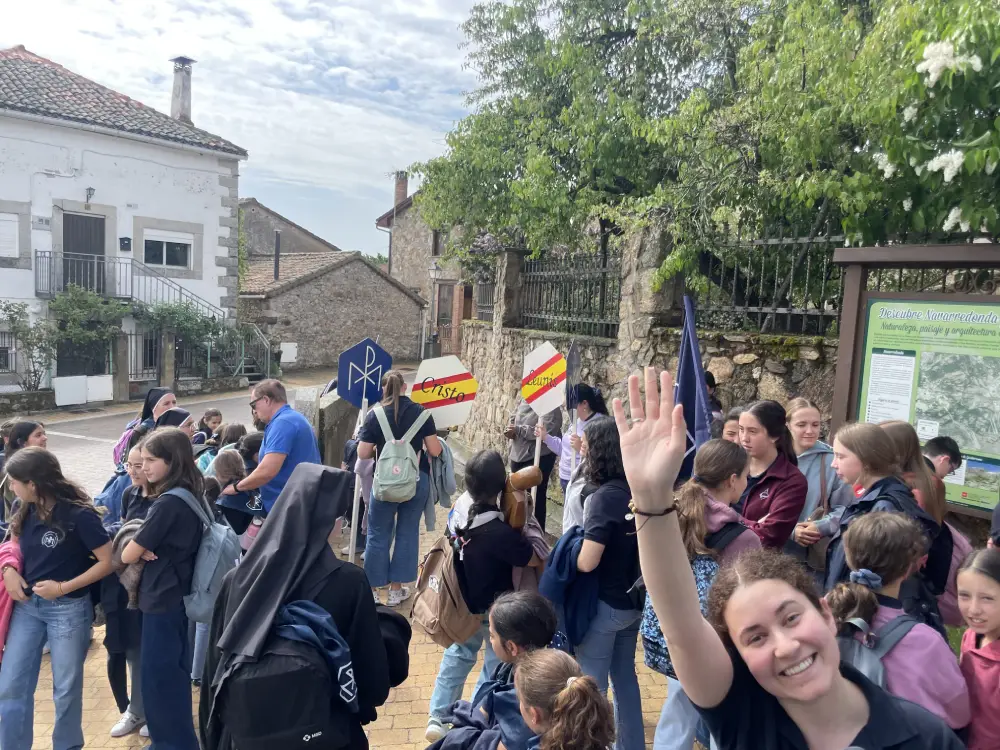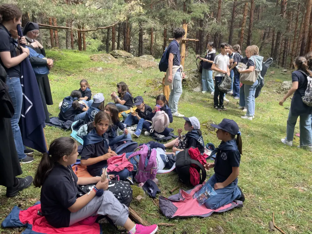 El día comenzó con la celebración de la Santa Misa en la iglesia del Colegio. A continuación, pusimos rumbo a Navarredonda. Una vez allí, nos distribuimos por patrullas y comenzamos la ruta. Al llegar al pinar, tuvimos una reunión de formación por edades. Tras ella, los mayores continuaron hasta la cascada, mientras las pequeñas realizaban un taller y tenían su rato de oración. Llegados a la cascada, los mayores disfrutaron de unas vistas preciosas y regresaron en silencio, para poder rezar.